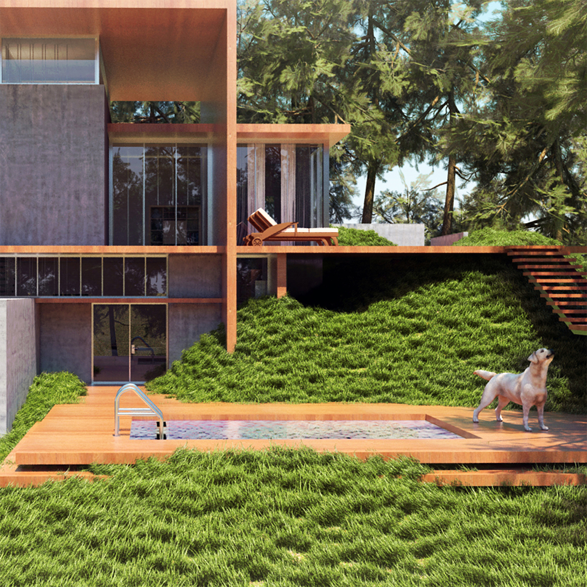 Materials: Concrete, wood, glass