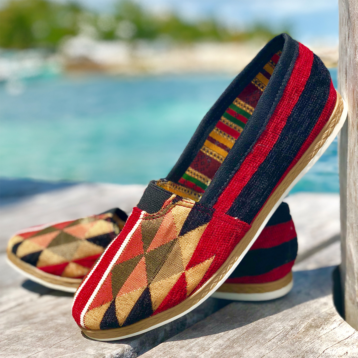 GIOIA creates casual footwear by incorporating artistic talents in the production process. Our designs are slip-ons made of colorful suede fabrics, with handmade embroidery, calligraphy or textile inspired by traditional bedouin rugs. Each pair has a purpose and a story. For every pair sold, part of the proceeds represent a source of income for a family in need, a contribution to an education fund, or support to a cause we strongly believe in at GIOIA. The brand started for women only but our next collection will also include men and children upon demand. In our next collection, we will also be introducing new designs and exploring more artistic skills to incorporate, beyond the traditional hand embroidery.