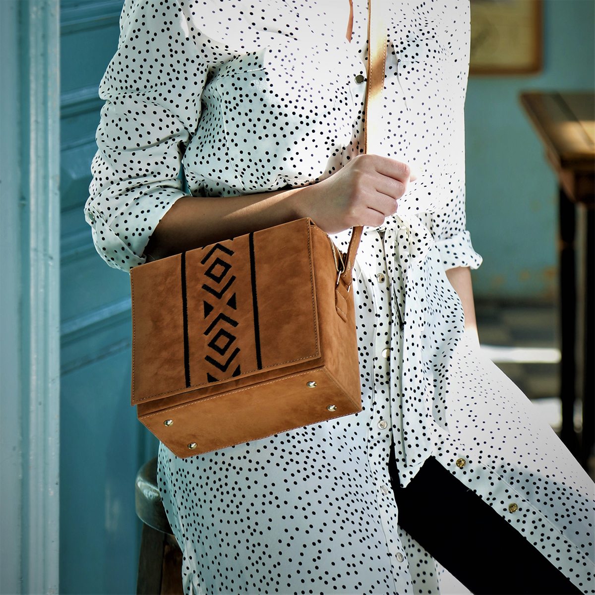 In this collection of bags, I adopted the edgy box shape in a size that fits the personality of the practical woman and accommodates what she may need during the day.