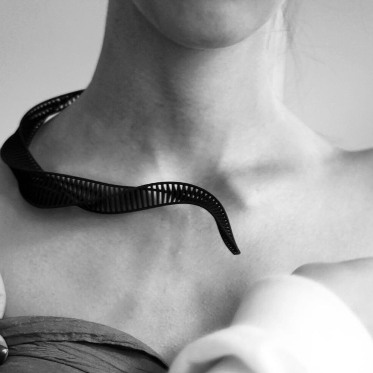 Hala Ghatasheh’s Conceptual Jewelry Design collection is the outcome of an experimental study exploring the possibilities of merging architecture, fashion, and technology.The setting used is that of the female body as a landscape, and studying its natural form and curvatures to generate architectural sculptures that emerge from and merge into it. This created unconventional statement pieces that highlight and complement its natural beauty in all shapes, while standing out with their unique forms and complex geometries.